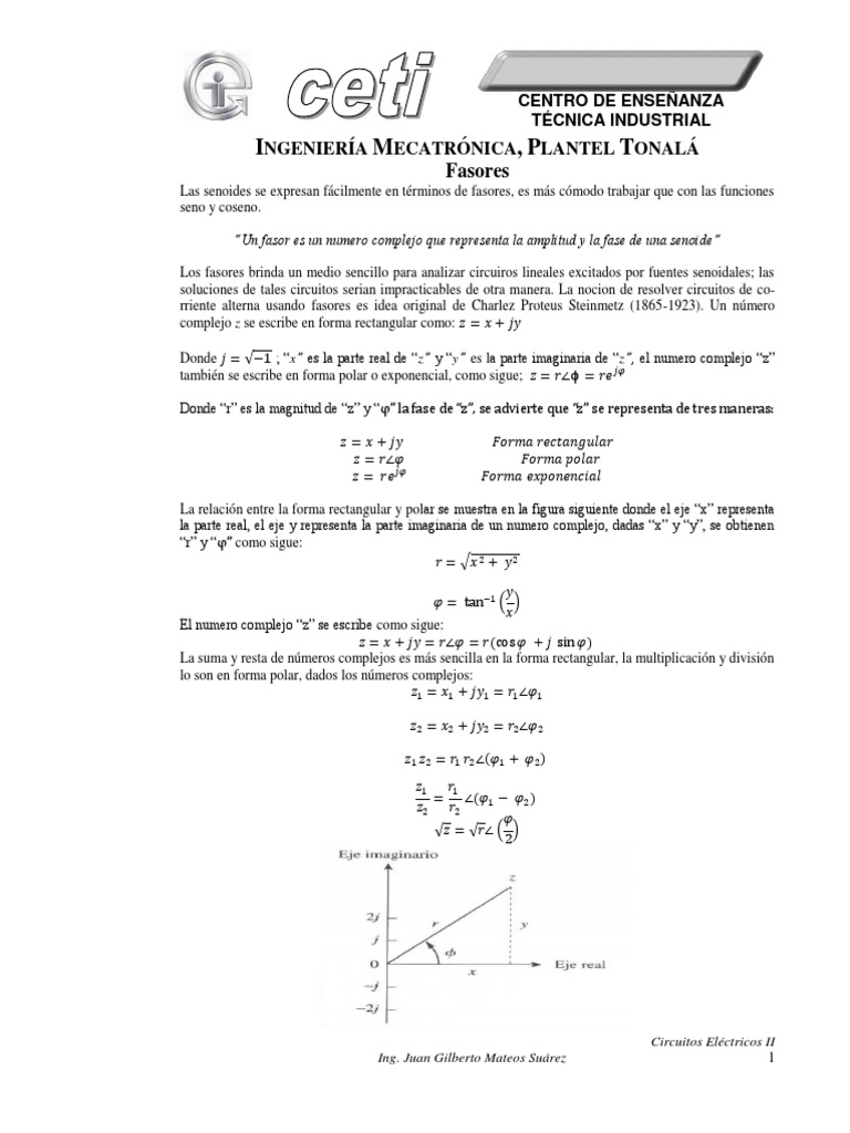 Numeros Complejos Y Fasores En Polar Y Forma Rectangular