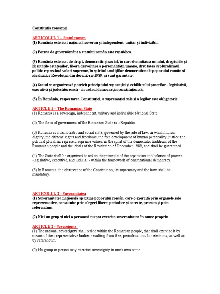 Constitutia Romaniei Curs Engleza